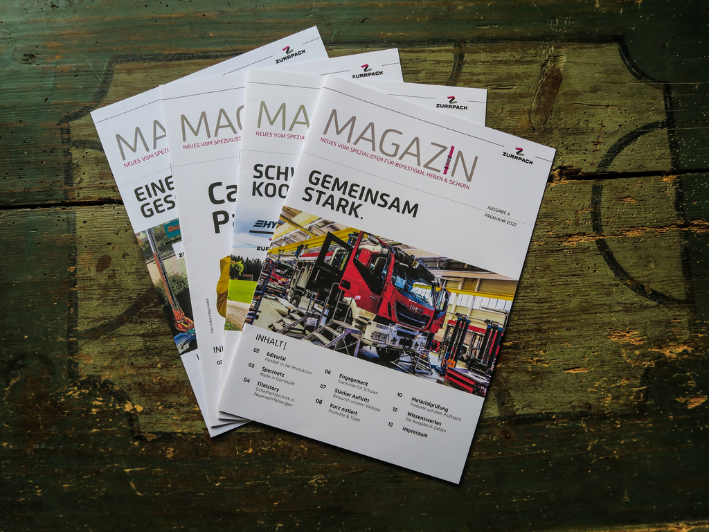 Mit einer frisch aufgemachten Hauszeitschrift informiert das Dornstadter Unternehmen ZURRPACK regelmäßig über Aktuelles und Wissenswertes im Unternehmen. Mit dem neuen "ZURRPACK Magazin" präsentieren wir ein pfiffiges und gleichsam informatives Format für Nachrichten über den Tellerrand hinaus. Inhaltlich lebt das ZURRPACK Magazin von Reportagen über erfolgreiche Sonderprojekte, Themen rund um die Ladungssicherung und das Heben von Lasten sowie Aktuelles aus Logistik, Bau, Handwerk und Industrie.